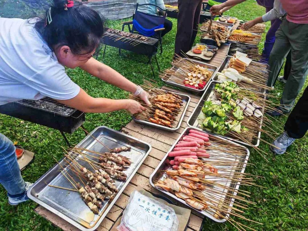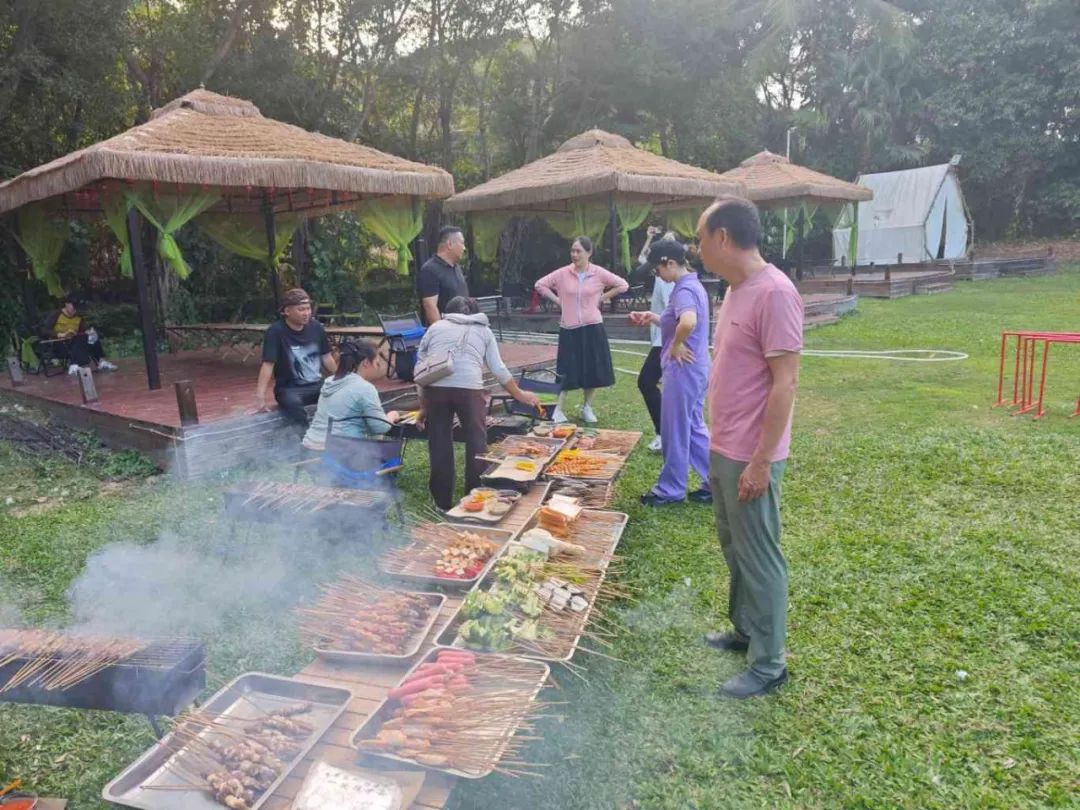 隨著夜幕的降臨,美味的晚餐時刻正式拉開帷幕。公司精心準備了豐盛的BBQ露營燒烤和香氣四溢的烤全羊,讓員工們大飽口福。