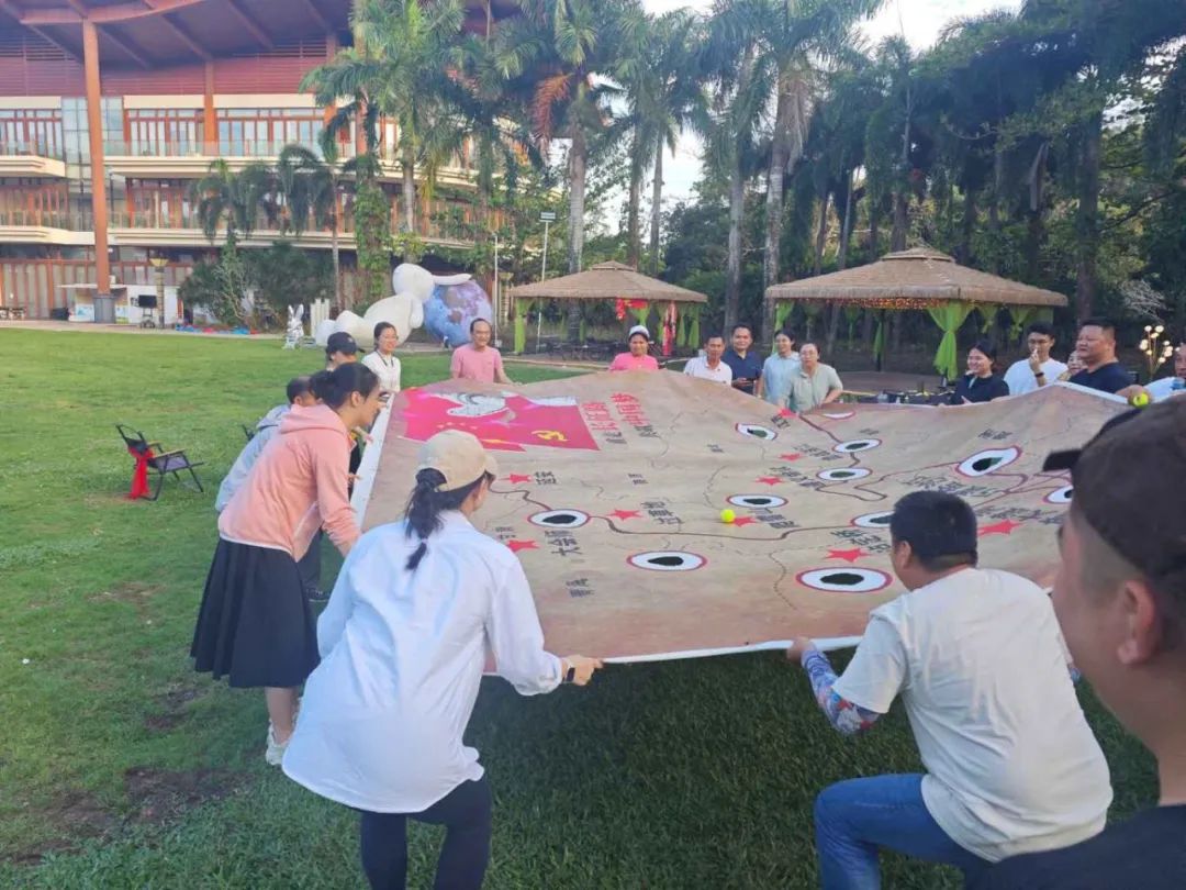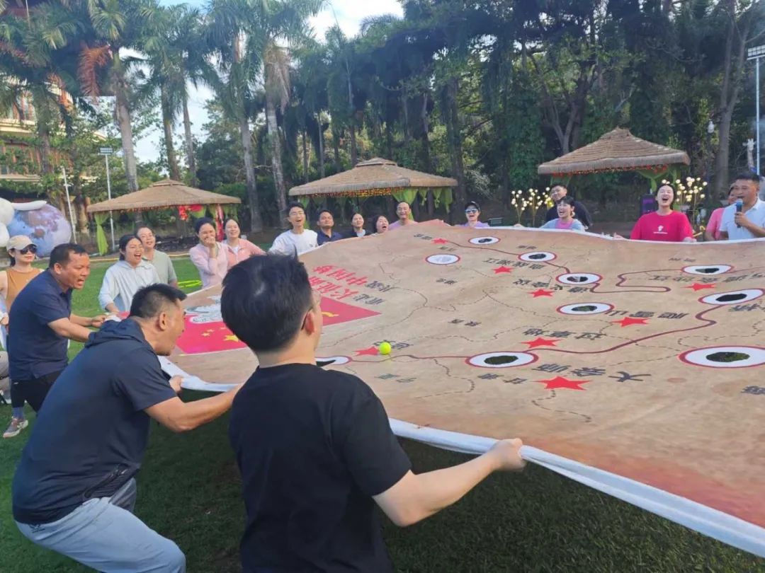 當日午后,全體員工滿懷期待地齊聚在團建活動場地?;顒右潦?,一系列妙趣橫生的暖場小游戲迅速點燃了現(xiàn)場的熱烈氛圍。在“四平八穩(wěn)”“筷子夾球”“草坪龍舟”“重走長征路”等游戲中,展現(xiàn)出了高度的團隊精神和競技熱情。這些小游戲不僅讓大家在輕松愉快的氛圍中迅速消除了工作中的疲憊與壓力,更讓大家深刻體會到了團隊協(xié)作的重要性,為后續(xù)的活動奠定了良好的基礎。