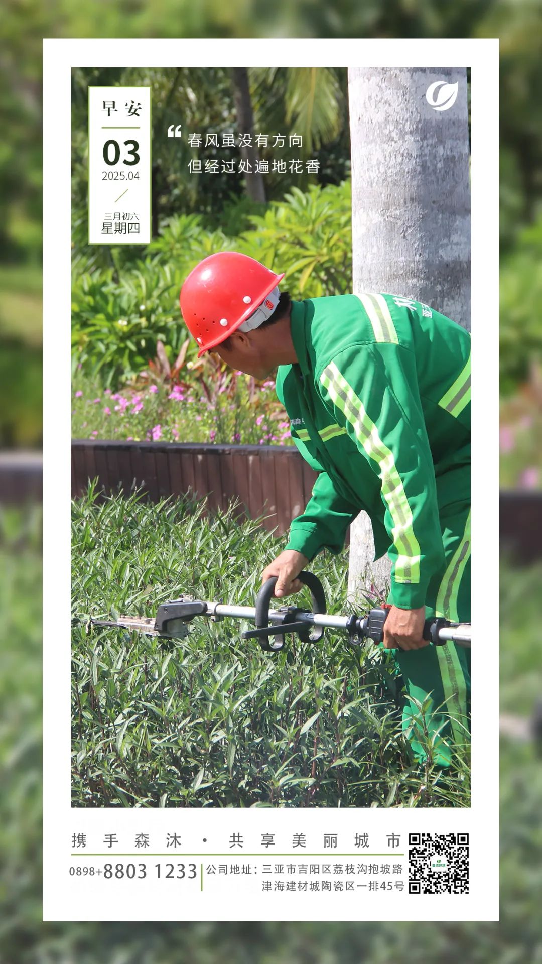 2017年7月創(chuàng)立于海南省三亞市(原名為三亞森沐清潔服務(wù)有限公司,于2020年12月更名為三亞森沐環(huán)境產(chǎn)業(yè)服務(wù)有限公司),是專業(yè)從事環(huán)衛(wèi)保潔和綠化養(yǎng)護的服務(wù)企業(yè),多年來我們致力于人居環(huán)境的改善和城市美化的提升,不斷的開拓創(chuàng)新,為城市環(huán)境可持續(xù)發(fā)展貢獻力量。