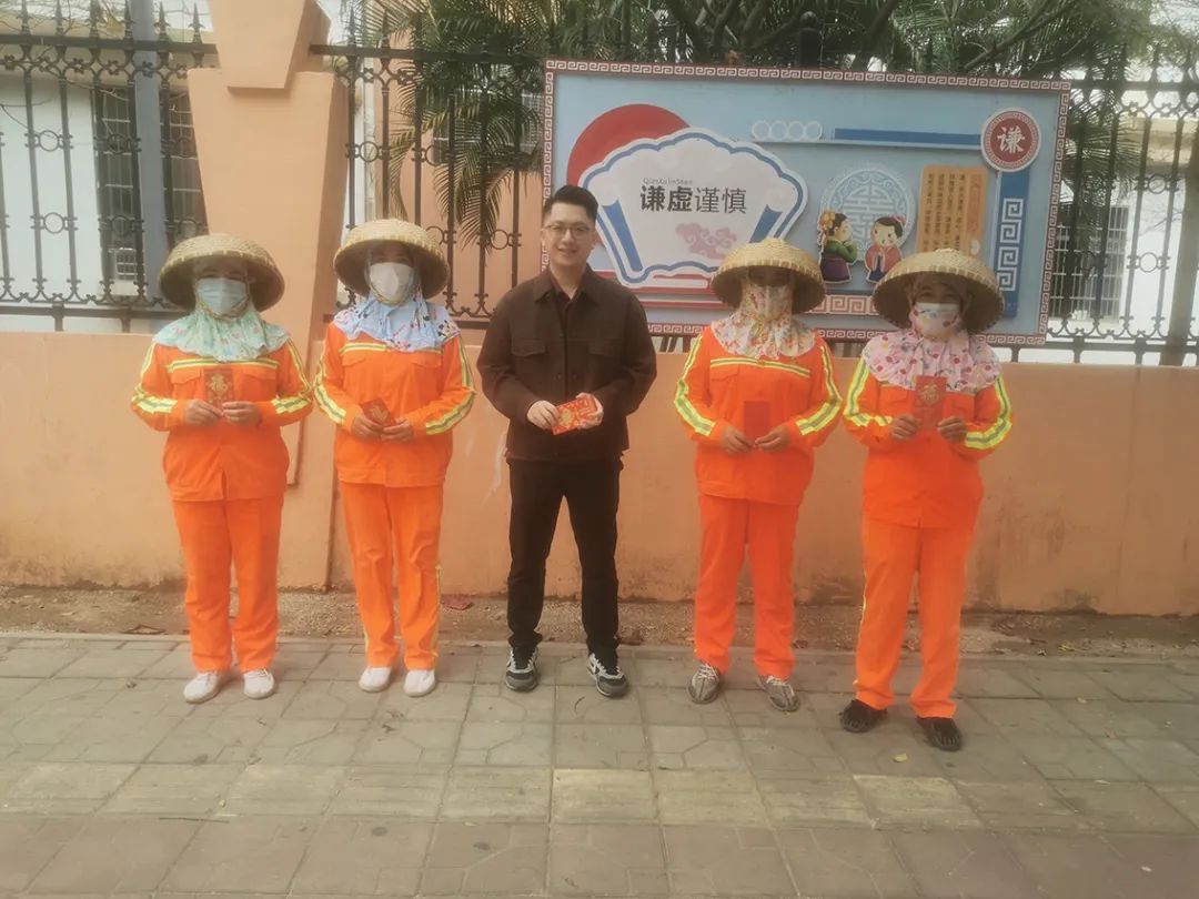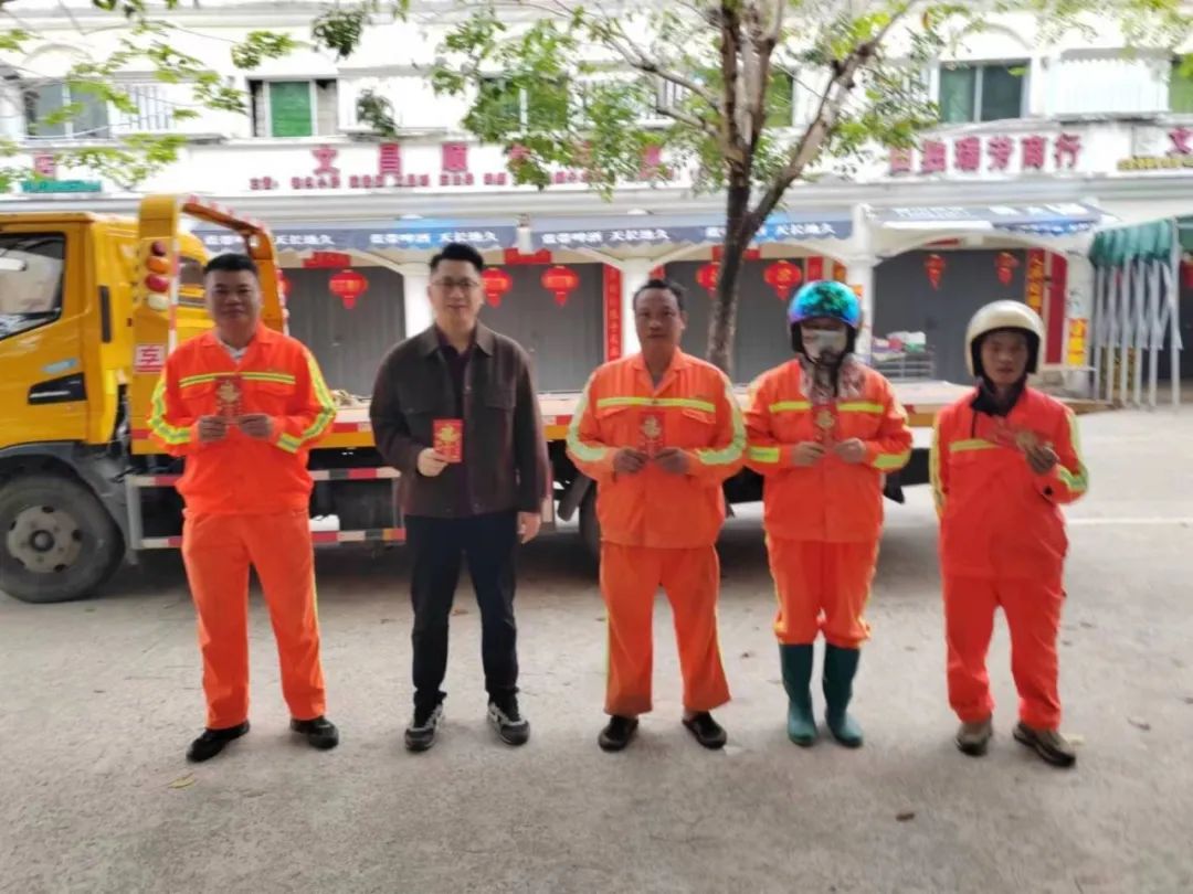 2024年2月10日大年初一,森沐環(huán)境總經(jīng)理助理、運(yùn)營(yíng)總監(jiān)柯俊帶著公司的關(guān)愛和溫暖走訪吉陽區(qū)各項(xiàng)目區(qū)域,看望慰問了一線的職工并發(fā)放開門紅包,對(duì)他們春節(jié)期間堅(jiān)守崗位,全力保障城市環(huán)境的干凈整潔,確保群眾歡樂祥和過春節(jié)表示衷心感謝,并致以最美好的誠摯問候和新春祝福,也預(yù)祝新的一年開門大吉。